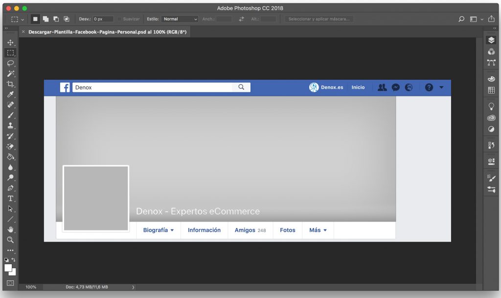 Antes de nada, cabe señalar que partimos de un documento PSD (Photoshop) que nos va a valer de Plantilla para poder Crear nuestro nuevo fondo de Facebook.